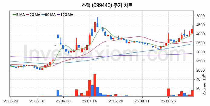 스맥 주가 전망 분석, 주식 차트 분석과 기간 수익률 및 주가 변동성 분석 (25년09월08일)