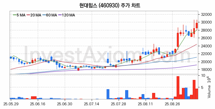 현대힘스 주가 전망 분석, 주식 차트 분석과 기간 수익률 및 주가 변동성 분석 (25년09월08일)