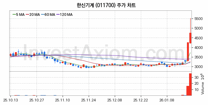 한신기계 주가 전망 분석, 주식 차트 분석과 기간 수익률 및 주가 변동성 분석 (26년01월21일)