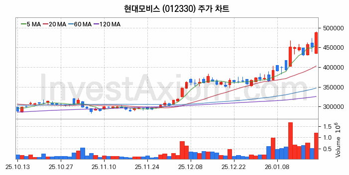 현대모비스 주가 전망 분석, 주식 차트 분석과 기간 수익률 및 주가 변동성 분석 (26년01월21일)