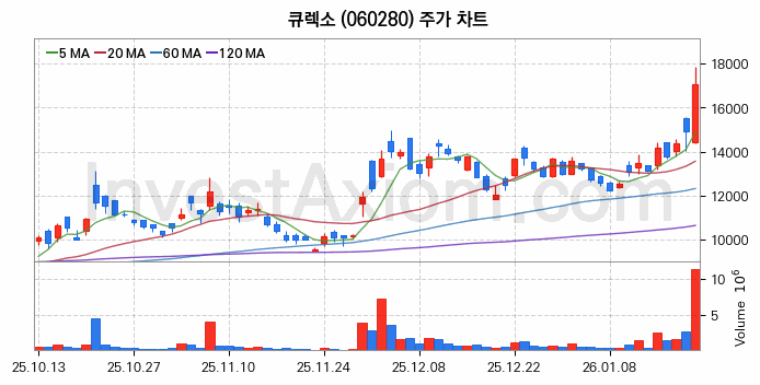 큐렉소 주가 전망 분석, 주식 차트 분석과 기간 수익률 및 주가 변동성 분석 (26년01월21일)