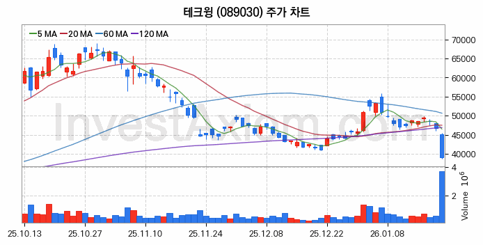 테크윙 주가 전망 분석, 주식 차트 분석과 기간 수익률 및 주가 변동성 분석 (26년01월21일)