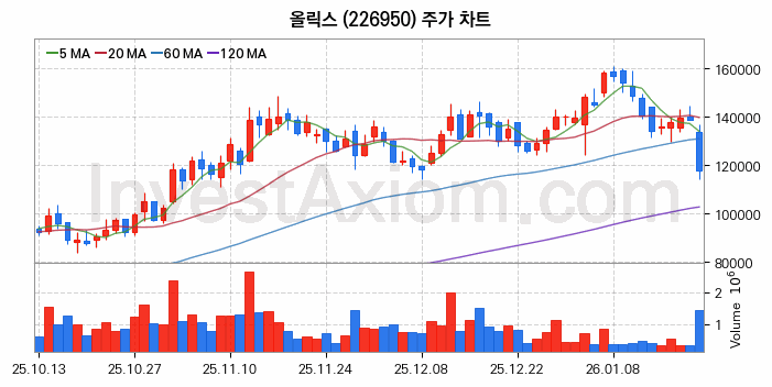 올릭스 주가 전망 분석, 주식 차트 분석과 기간 수익률 및 주가 변동성 분석 (26년01월21일)