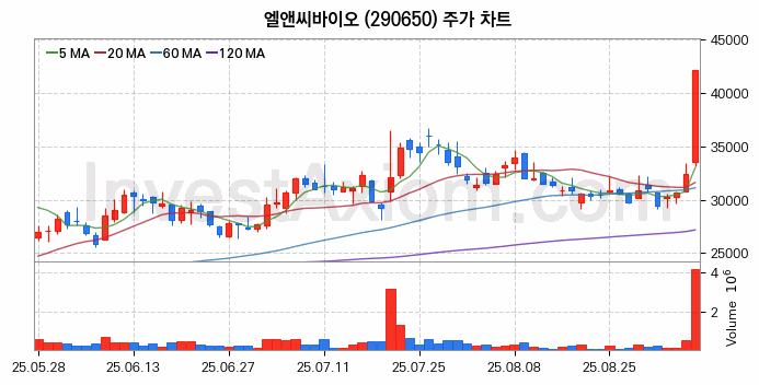 엘앤씨바이오 주가 전망 분석, 주식 차트 분석과 기간 수익률 및 주가 변동성 분석 (25년09월05일)