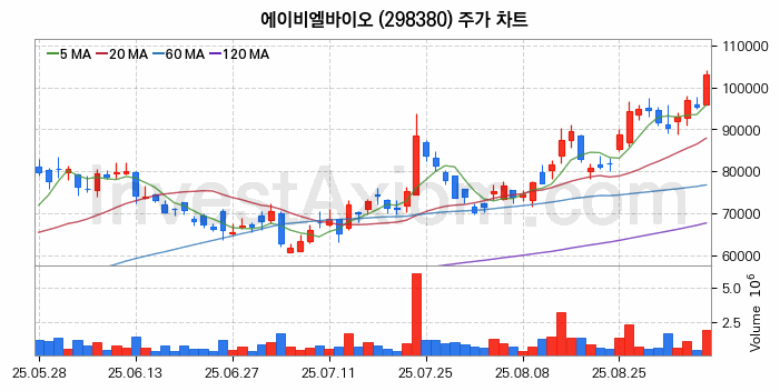 에이비엘바이오 주가 전망 분석, 주식 차트 분석과 기간 수익률 및 주가 변동성 분석 (25년09월05일)
