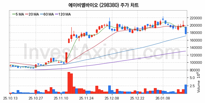에이비엘바이오 주가 전망 분석, 주식 차트 분석과 기간 수익률 및 주가 변동성 분석 (26년01월21일)