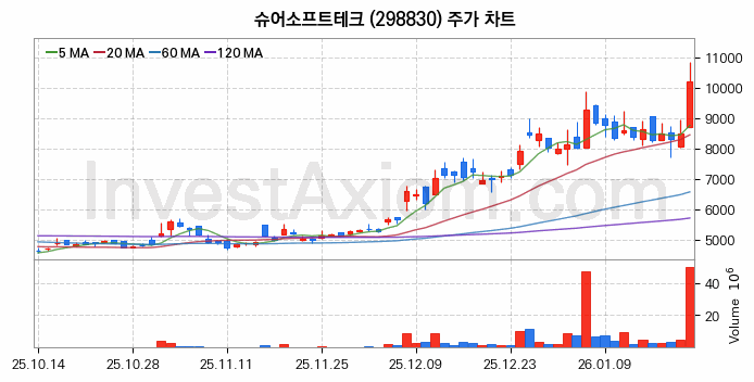 슈어소프트테크 주가 전망 분석, 주식 차트 분석과 기간 수익률 및 주가 변동성 분석 (26년01월22일)