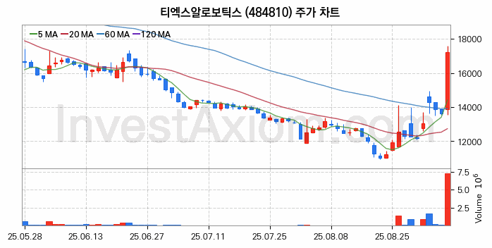 티엑스알로보틱스 주가 전망 분석, 주식 차트 분석과 기간 수익률 및 주가 변동성 분석 (25년09월05일)