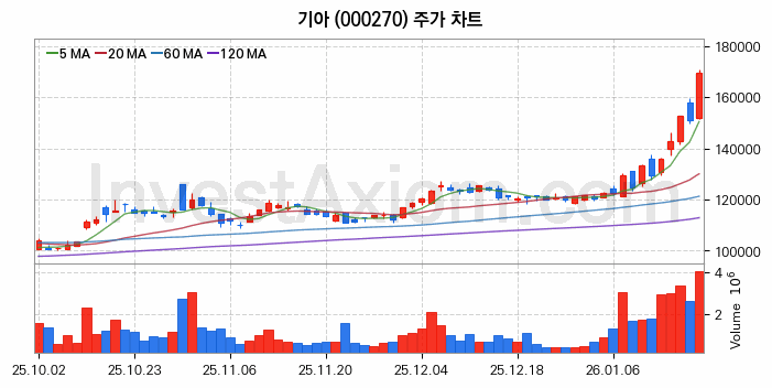 기아 주가 전망 분석, 주식 차트 분석과 기간 수익률 및 주가 변동성 분석 (26년01월19일)