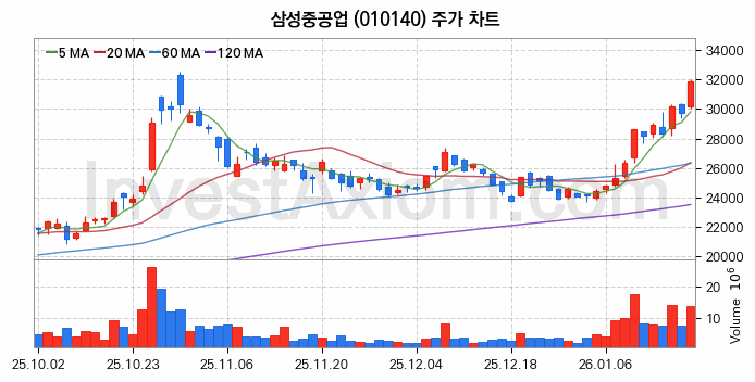 삼성중공업 주가 전망 분석, 주식 차트 분석과 기간 수익률 및 주가 변동성 분석 (26년01월19일)