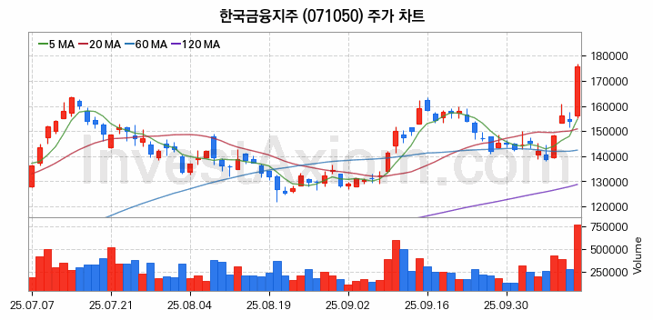 한국금융지주 주가 전망 분석, 주식 차트 분석과 기간 수익률 및 주가 변동성 분석 (25년10월20일)