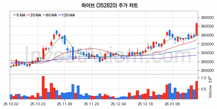 하이브 주가 전망 분석, 주식 차트 분석과 기간 수익률 및 주가 변동성 분석 (26년01월19일)