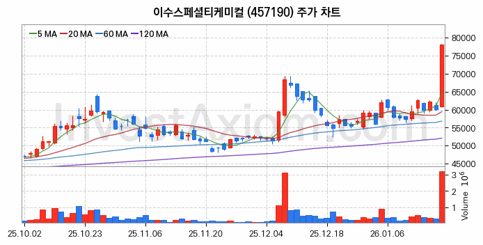 이수스페셜티케미컬 주가 전망 분석, 주식 차트 분석과 기간 수익률 및 주가 변동성 분석 (26년01월19일)