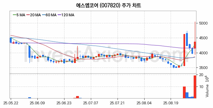 에스엠코어 주가 전망 분석, 주식 차트 분석과 기간 수익률 및 주가 변동성 분석 (25년09월01일)