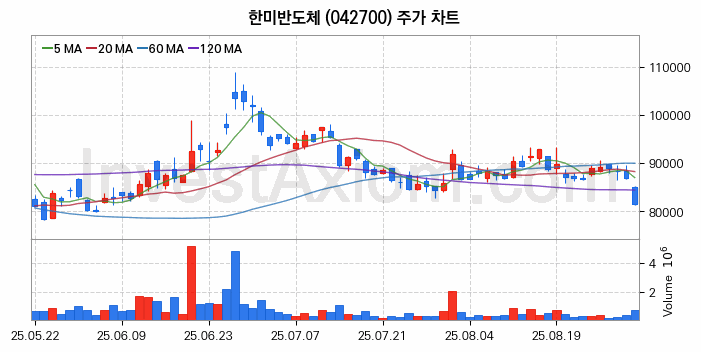 한미반도체 주가 전망 분석, 주식 차트 분석과 기간 수익률 및 주가 변동성 분석 (25년09월01일)