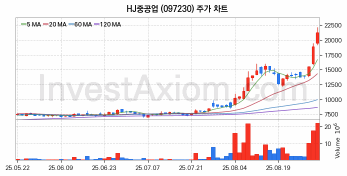 HJ중공업 주가 전망 분석, 주식 차트 분석과 기간 수익률 및 주가 변동성 분석 (25년09월01일)