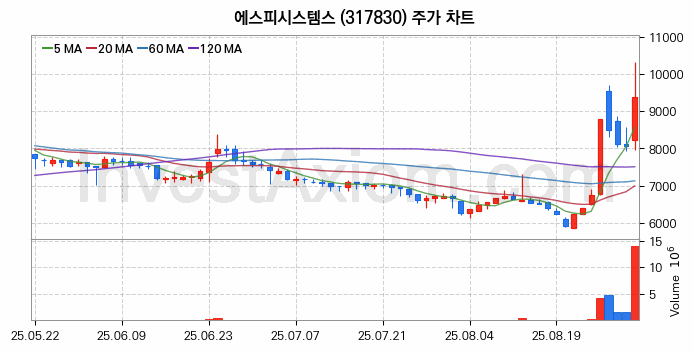 에스피시스템스 주가 전망 분석, 주식 차트 분석과 기간 수익률 및 주가 변동성 분석 (25년09월01일)