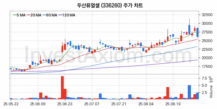 두산퓨얼셀 주가 전망 분석, 주식 차트 분석과 기간 수익률 및 주가 변동성 분석 (25년09월01일)