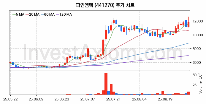 파인엠텍 주가 전망 분석, 주식 차트 분석과 기간 수익률 및 주가 변동성 분석 (25년09월01일)