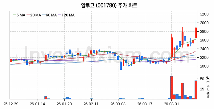 알루코 주가 전망 분석, 주식 차트 분석과 기간 수익률 및 주가 변동성 분석 (26년04월13일)