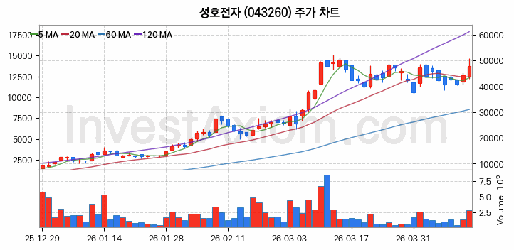 성호전자 주가 전망 분석, 주식 차트 분석과 기간 수익률 및 주가 변동성 분석 (26년04월13일)