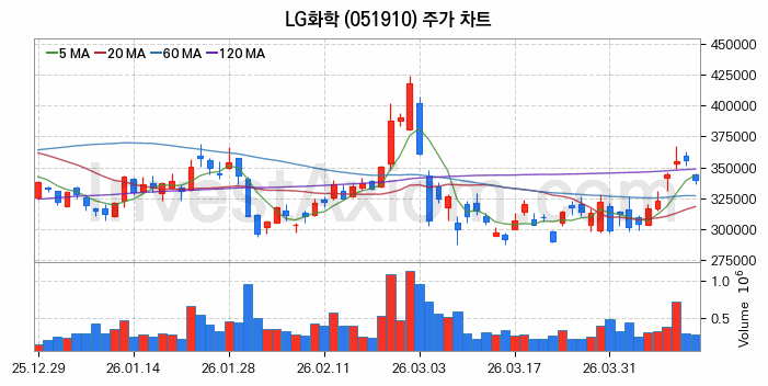 LG화학 주가 전망 분석, 주식 차트 분석과 기간 수익률 및 주가 변동성 분석 (26년04월13일)
