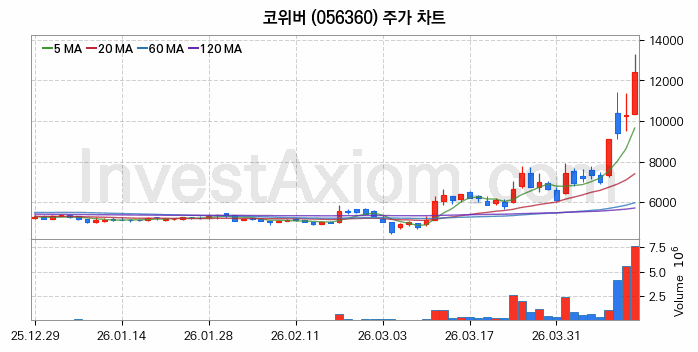 코위버 주가 전망 분석, 주식 차트 분석과 기간 수익률 및 주가 변동성 분석 (26년04월13일)