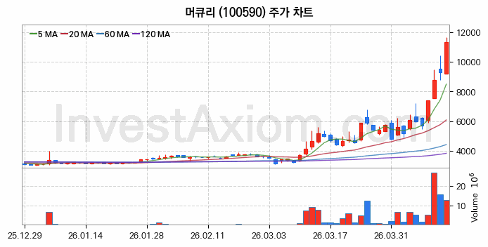 머큐리 주가 전망 분석, 주식 차트 분석과 기간 수익률 및 주가 변동성 분석 (26년04월13일)