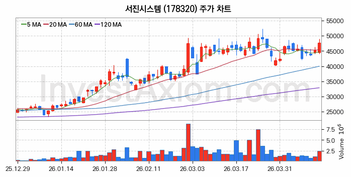 서진시스템 주가 전망 분석, 주식 차트 분석과 기간 수익률 및 주가 변동성 분석 (26년04월13일)