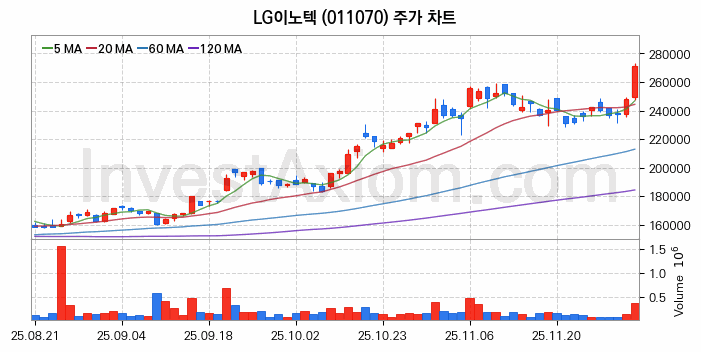 LG이노텍 주가 전망 분석, 주식 차트 분석과 기간 수익률 및 주가 변동성 분석 (25년12월03일)
