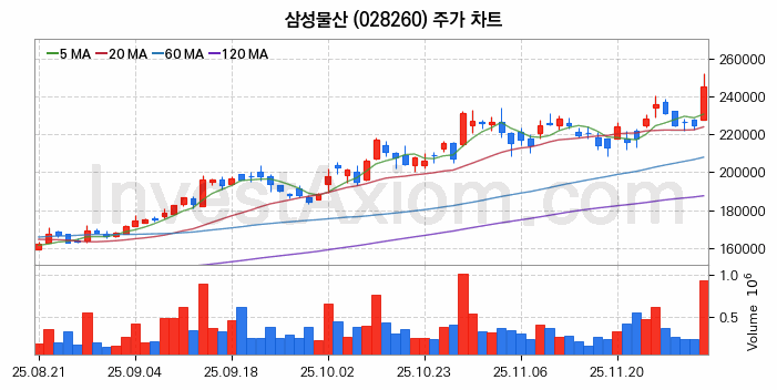 삼성물산 주가 전망 분석, 주식 차트 분석과 기간 수익률 및 주가 변동성 분석 (25년12월03일)