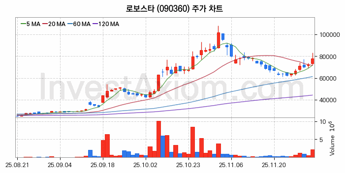 로보스타 주가 전망 분석, 주식 차트 분석과 기간 수익률 및 주가 변동성 분석 (25년12월03일)