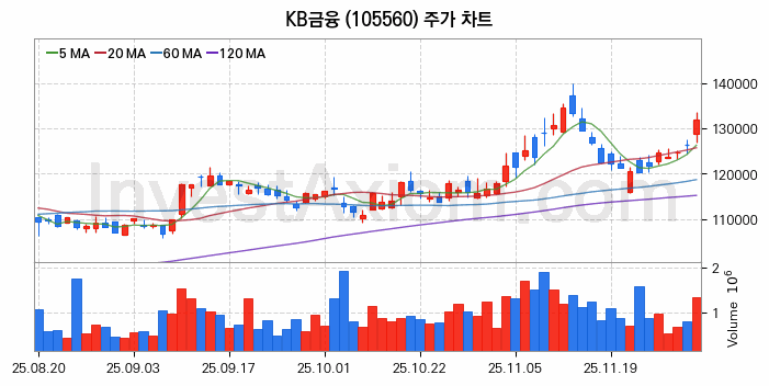 KB금융 주가 전망 분석, 주식 차트 분석과 기간 수익률 및 주가 변동성 분석 (25년12월02일)