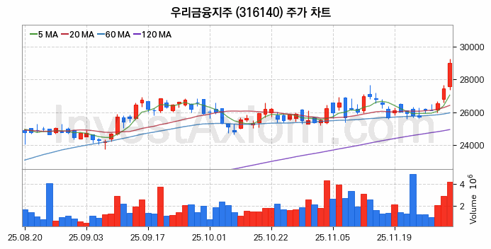 우리금융지주 주가 전망 분석, 주식 차트 분석과 기간 수익률 및 주가 변동성 분석 (25년12월02일)