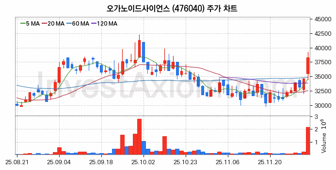 오가노이드사이언스 주가 전망 분석, 주식 차트 분석과 기간 수익률 및 주가 변동성 분석 (25년12월03일)