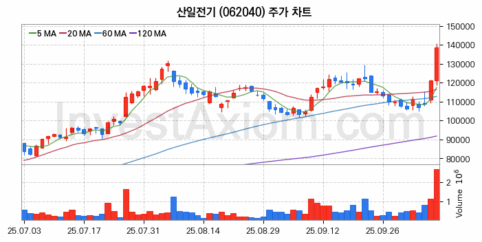 산일전기 주가 전망 분석, 주식 차트 분석과 기간 수익률 및 주가 변동성 분석 (25년10월16일)