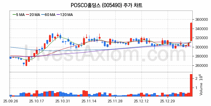 POSCO홀딩스 주가 전망 분석, 주식 차트 분석과 기간 수익률 및 주가 변동성 분석 (26년01월13일)
