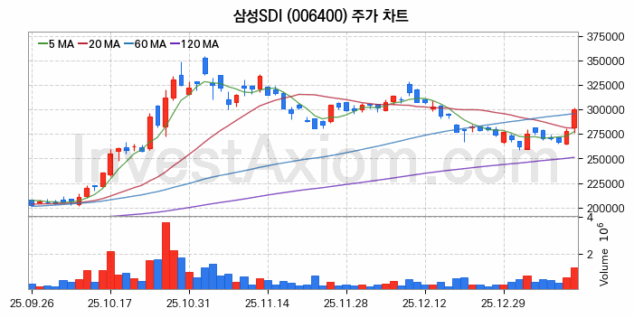 삼성SDI 주가 전망 분석, 주식 차트 분석과 기간 수익률 및 주가 변동성 분석 (26년01월13일)