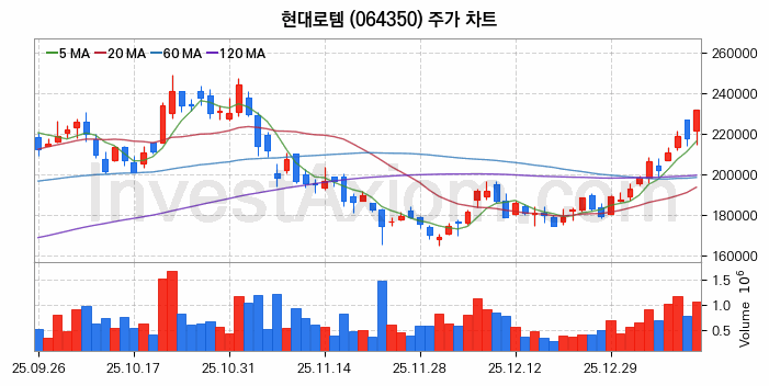 현대로템 주가 전망 분석, 주식 차트 분석과 기간 수익률 및 주가 변동성 분석 (26년01월13일)