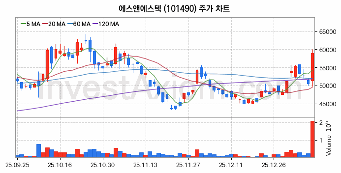 에스앤에스텍 주가 전망 분석, 주식 차트 분석과 기간 수익률 및 주가 변동성 분석 (26년01월12일)