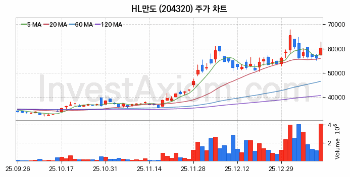 HL만도 주가 전망 분석, 주식 차트 분석과 기간 수익률 및 주가 변동성 분석 (26년01월13일)