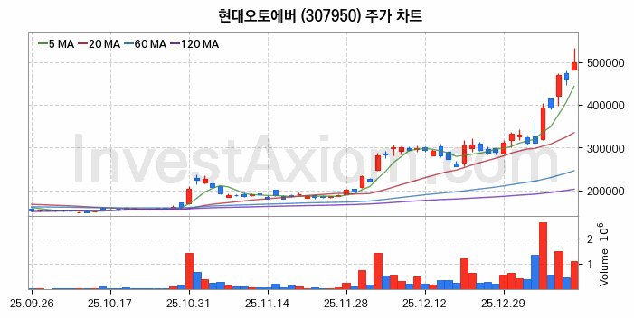 현대오토에버 주가 전망 분석, 주식 차트 분석과 기간 수익률 및 주가 변동성 분석 (26년01월13일)