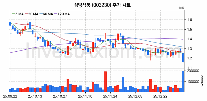 삼양식품 주가 전망 분석, 주식 차트 분석과 기간 수익률 및 주가 변동성 분석 (26년01월07일)