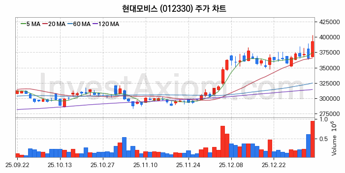 현대모비스 주가 전망 분석, 주식 차트 분석과 기간 수익률 및 주가 변동성 분석 (26년01월07일)