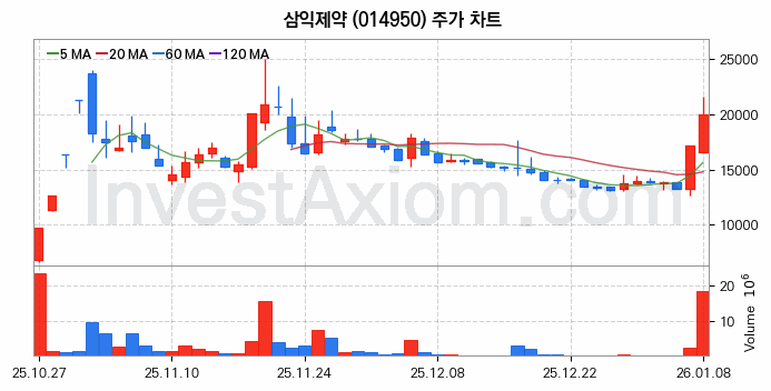 삼익제약 주가 전망 분석, 주식 차트 분석과 기간 수익률 및 주가 변동성 분석 (26년01월08일)
