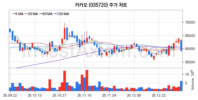 카카오 주가 전망 분석, 주식 차트 분석과 기간 수익률 및 주가 변동성 분석 (26년01월07일)