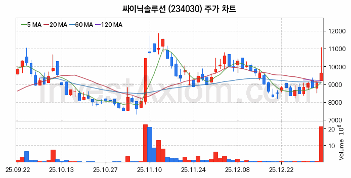싸이닉솔루션 주가 전망 분석, 주식 차트 분석과 기간 수익률 및 주가 변동성 분석 (26년01월07일)
