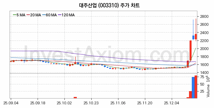 대주산업 주가 전망 분석, 주식 차트 분석과 기간 수익률 및 주가 변동성 분석 (25년12월17일)