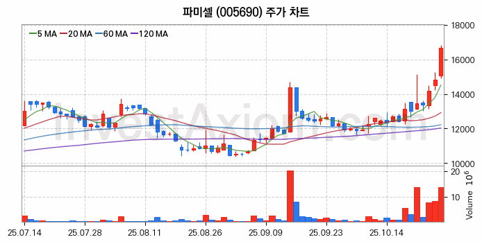 파미셀 주가 전망 분석, 주식 차트 분석과 기간 수익률 및 주가 변동성 분석 (25년10월27일)