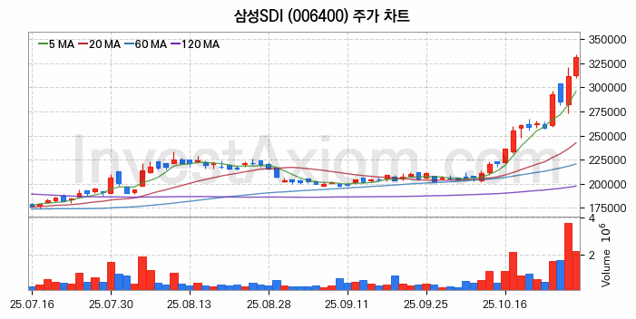 삼성SDI 주가 전망 분석, 주식 차트 분석과 기간 수익률 및 주가 변동성 분석 (25년10월29일)